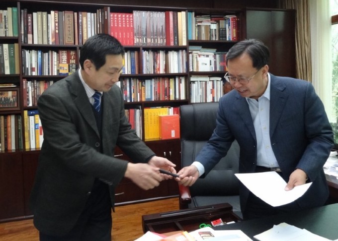 2013年3月20日王老师和中央数字电视台主席 王平先生在一起